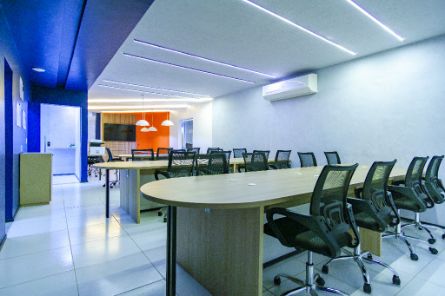 Uma sala completa, preparada para receber reuniões , palestras e treinamentos maiores, presenciais.